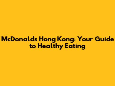 McDonald's Hong Kong: Your Guide To Healthy Eating